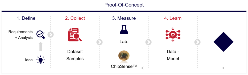 Our core technology ChipSense™ is based on high-performance detectors having selective wavelengths in the near-infrared region (850 -1700 nm). This photonic chip provides a discrete NIR fingerprint of the material under analysis.